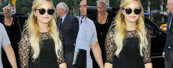 Paparazzis fotografaram Demi Lovato - com um vestido preto, óculos de sol e um par de salto alto com glittler – ao chegar ao estúdio do programa “Late Night With Jimmy Fallon” em NYC, onde dará mais uma entrevista hoje (05/09). Clique nas miniaturas e confira as fotos: